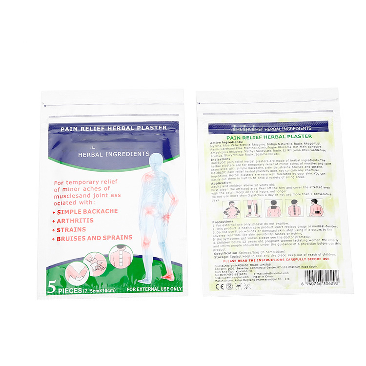 Plasturele poroase transdermice chinezești pentru ameliorarea durerii Tencuiala pe bază de plante: fără efect de primă trecere la ficat, nu este afectată de rata de golire gastrică, biodisponibilitate ridicată; Usor de folosit, fara durere, poate fi retras sau intrerupt in orice moment; Doză precisă, zonă fixă de absorbție și concentrație plasmatică stabilă; Fără colofoniu și alți adezivi, iritații mici ale pielii; Prelungiți timpul de acțiune și reduceți Timpul de medicație.