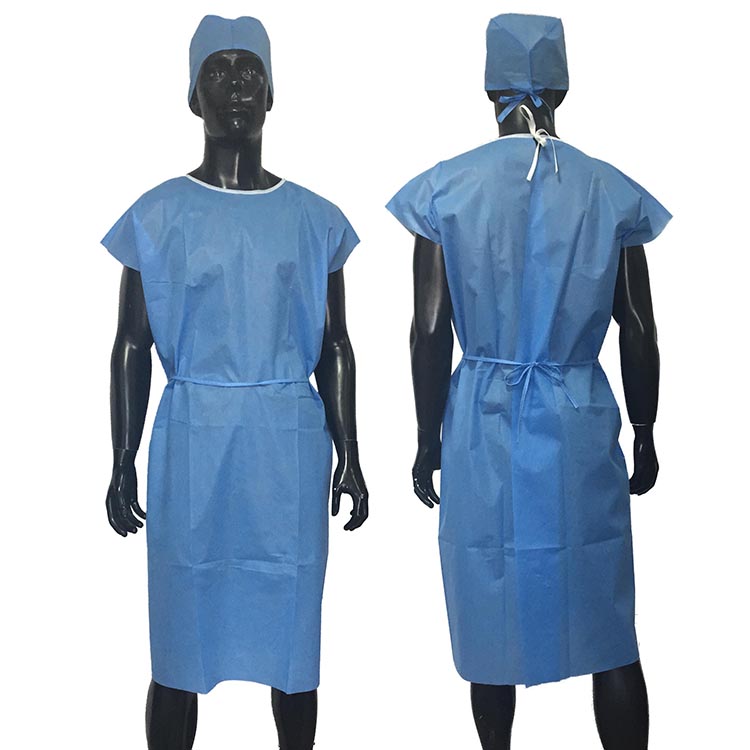 Halatul de unică folosință pentru pacient ar putea fi folosit pentru spitale, laborator, atelier fără praf, industria alimentară, producători de electronice. Este utilizat pe scară largă în spital ca halat de examinare a pacientului, designul simplu poate fi purtat și îndepărtat ușor. Poate proteja purtătorul pentru a menține un mediu curat, oferind și protecție a confidențialității.