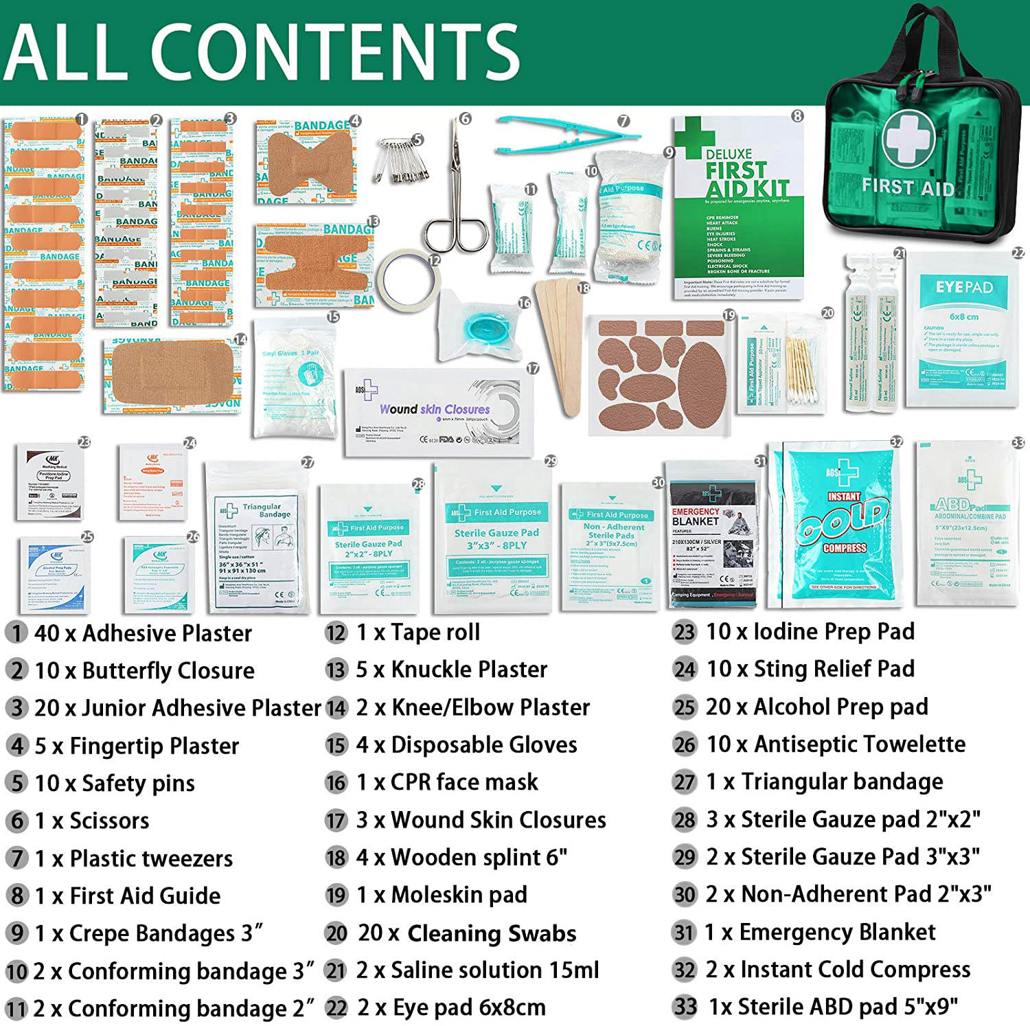 4 Detalii despre produs pentru geantă verde de prim ajutor cu 200 de piese medicale de calitate spitalicească