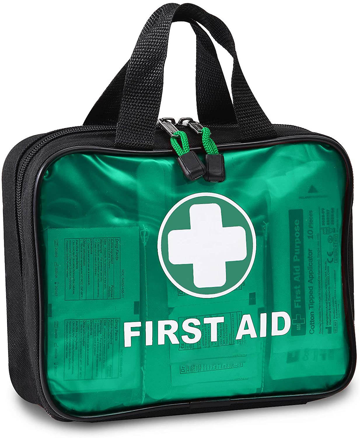 Geantă verde de prim ajutor cu 200 de articole medicale de calitate spitalicească