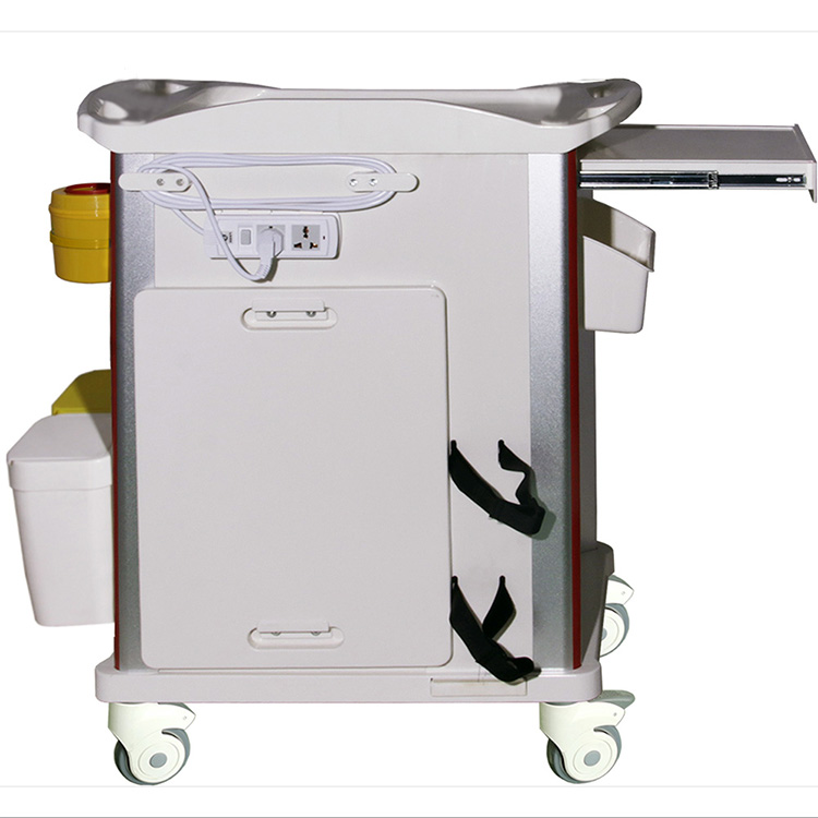 | Dreapta | Materialul de nailon al suportului telescopic de perfuzie este format dintr-o singură dată. Platforma defibrilatorului și suportul de perfuzie pot fi schimbate stânga și dreapta. Găleata dublă de murdărie din ABS este utilizată pentru clasificarea gunoiului. Rotiți carcasa pentru obiecte ascuțite |